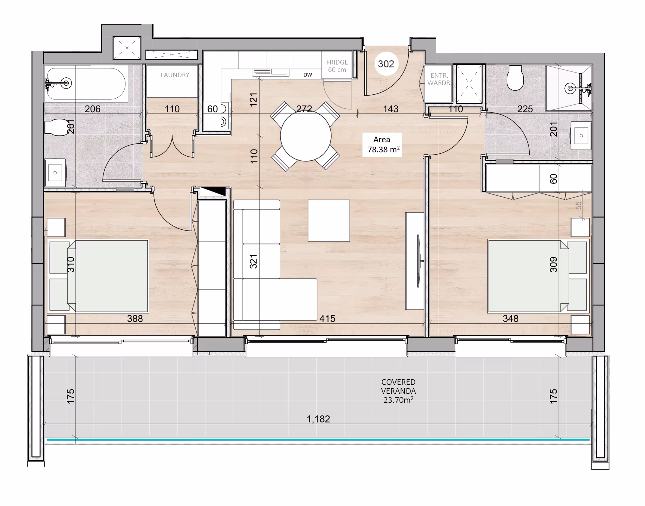 Überdachte Veranda-Fläche